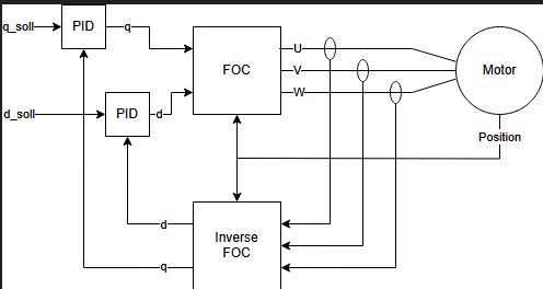 FOC wird oft mit einer PID Regelung zu dem folgendem System kombiniert: