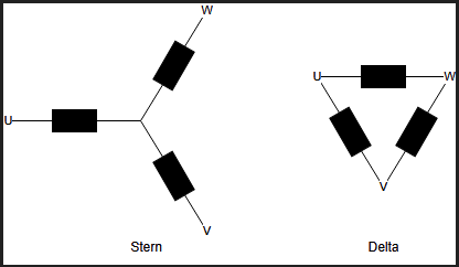 Elektrisch werden die Spulen entweder als Stern oder als Delta verbunden: