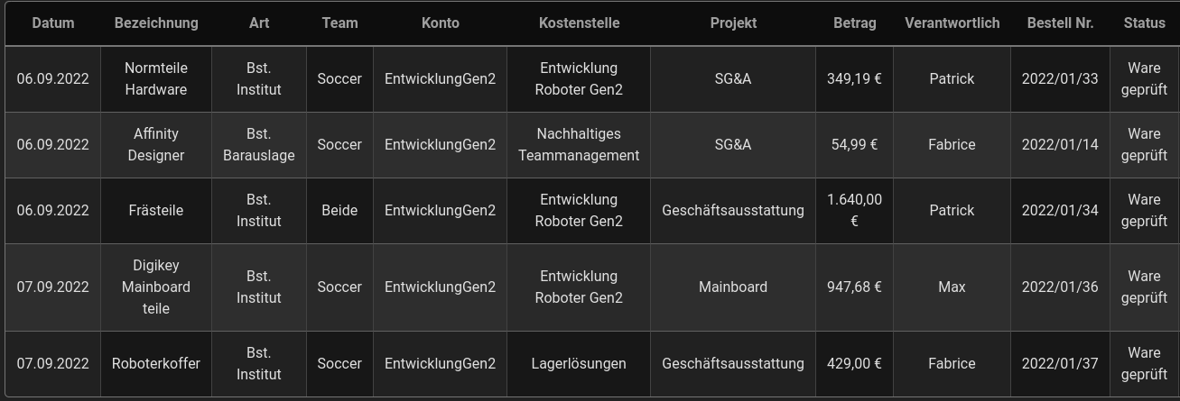 Die Buchhaltung wird in dieser Excel-Liste geführt. Es gibt einen Reiter indem alle Buchungen eingetragen werden. Eine Übersicht und zu jedem Topf einen eigenen Reiter. In den Reitern der Töpfe können die jeweiligen Kostenstellen, Beantragte und Gewährte Bugets und Saldos gefunden werden. Auch die Kontonummer und die Laufzeit sind hier eintgetragen.